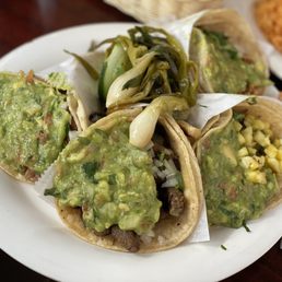 This is hidden gem in Brooklyn that's well worth a visit when looking for a quick bite. The tacos were absolutely delicious, exceeding all expectations. I tried the chicken, steak, and Mexican sausage tacos, each more flavorful than the last. The meats were well-seasoned and cooked to perfection. The guac stole the show. The price of each taco was only $4.5 and worth every cent! The outdoor seating area is designed like a tropical greenhouse with plants. It offers a relaxed vibe making for an enjoyable dining experience. The service was prompt and professional.